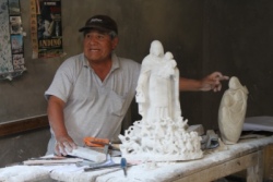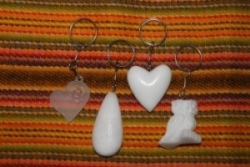 Alabastfigurer. I området omkring Ayacucho i de centrale peruanske Andesbjerge fremstilles mange forskellige pynte- og brugsgenstande af især hvid men også rød alabast. Alabast er et forholdsvis blødt materiale (hårdhed 2), og det kan være halvgennemsigtigt. Alabast har tidligere været anvendt som erstatning for glas. Jeg har importeret et lille udvalg af julekrybber, nøgleringe, sæbeskåle og andre figurer. |